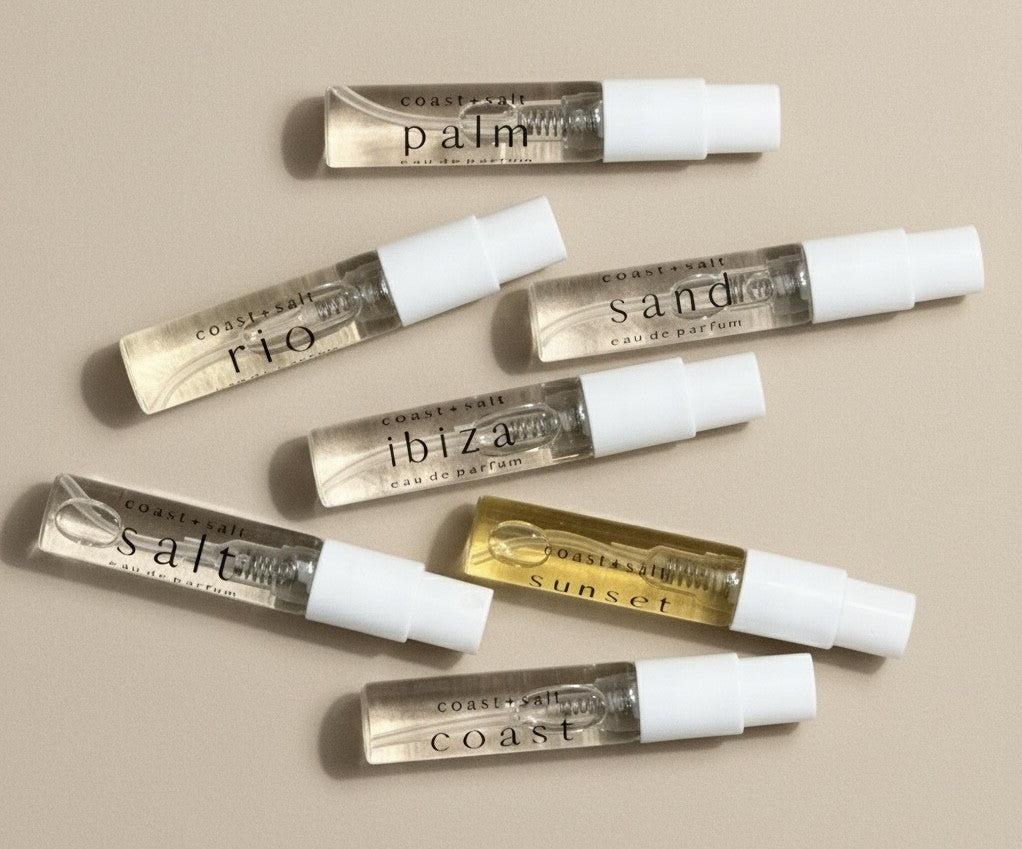 Sample your way to your new favorite scent! Our Sample Set is the perfect way to try each of our Eau de Parfums before you commit to a full-sized bottle. The Eau de Parfum Sample Set comes with 7 2 ml samples of our most popular fragrances, including our Limited Edition scent, Sunset Sorbet.